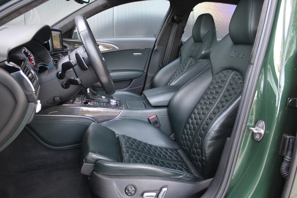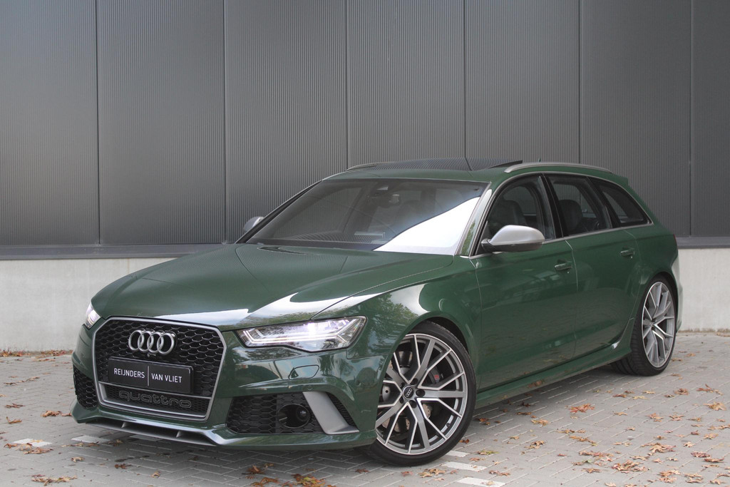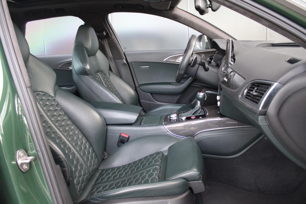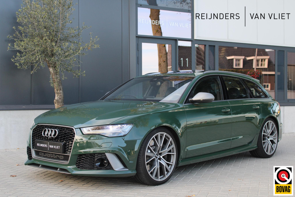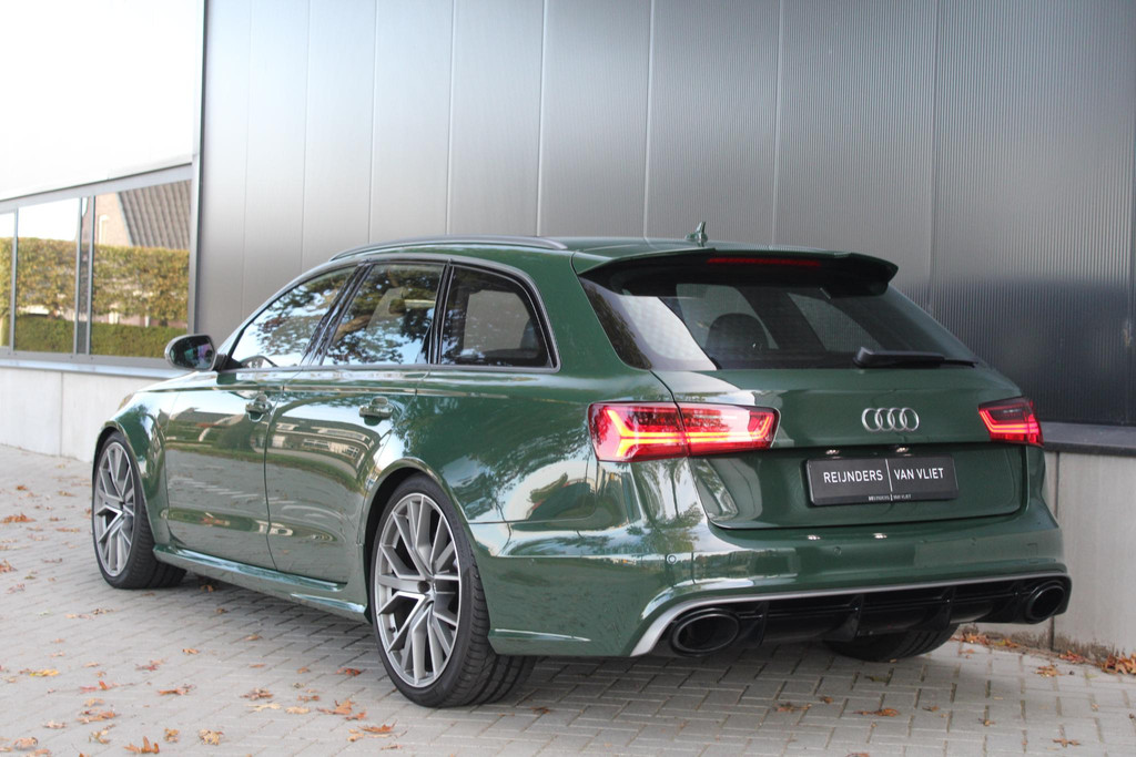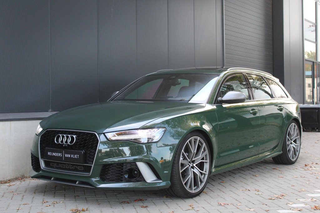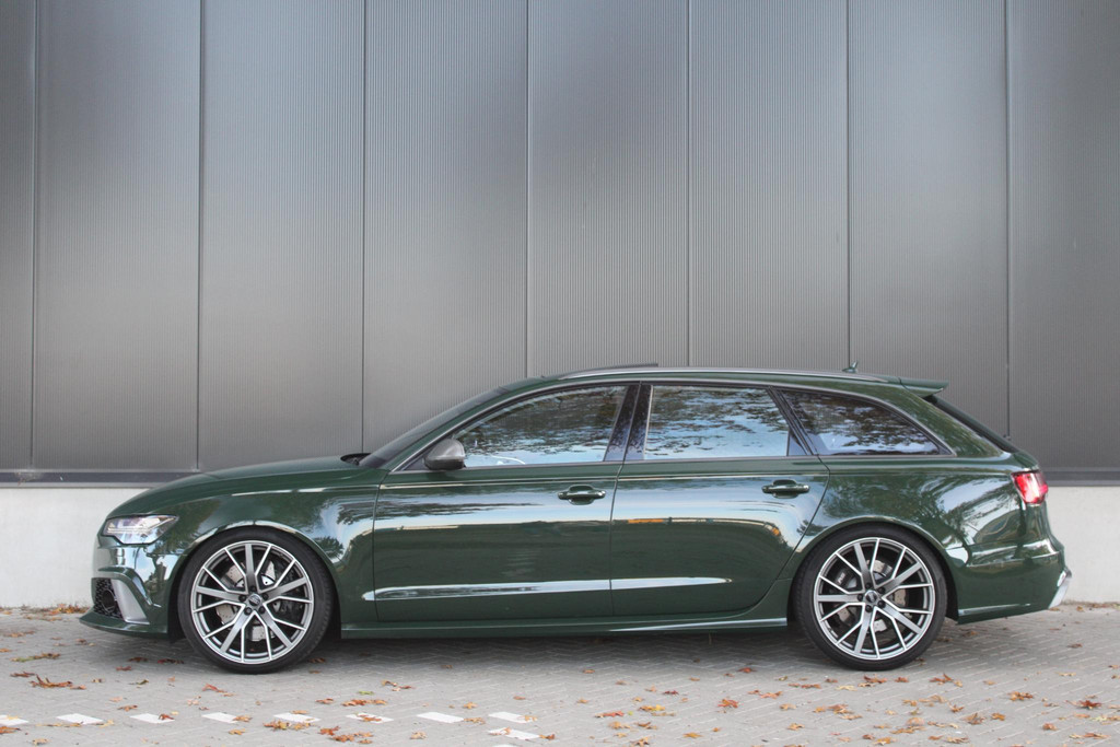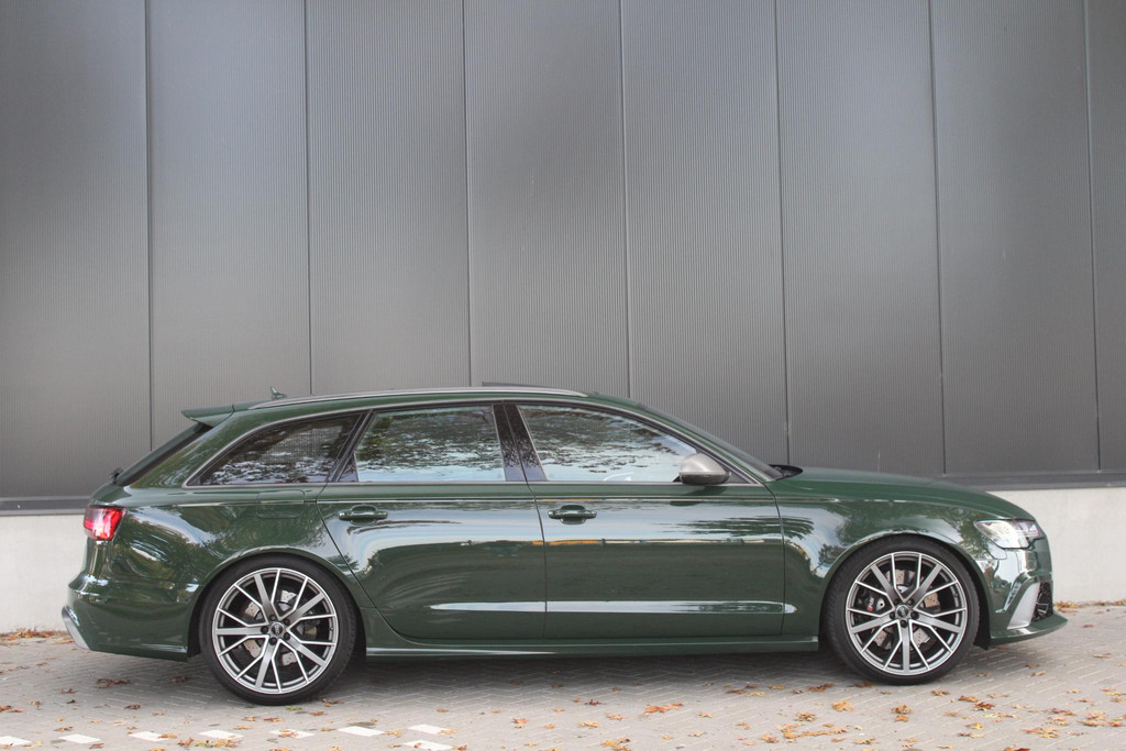 Deze schitterende en unieke Audi RS6 is origineel afkomstig uit Duitsland, waar hij door de fabrikant (Audi AG) bereden is als directie auto. Daarna is hij door Audi Nederland hiernaartoe gehaald en geïmporteerd. Auto is volledig dealeronderhouden en in zeer goede staat. Voorzien van unieke opties zoals de Audi Exclusive lakkleur in British Racing Green (kleur op klantwens) als het uitgebreide Audi Exclusive Lederpakket in donker groen, maken deze RS6 zeer smaakvol en echt anders dan het andere aanbod online. Ook het ontbreken van getint glas draagt bij aan het voorkomen van de auto.